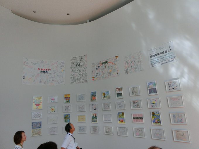 - 続き4 南相馬市に全国各地から届いた寄せ書きの数々。これでも展示できているのは1割程度とのこと。 沿岸部には、年内に稼働予定という出力6万9500kWの太陽光発電所。他にはロボットのテストフィールドが建設中。でも沿岸部で活用の動きが始まっているのはごく一部。延々と何もない状態です。続く pic.twitter.com/ipbXOVRt1s posted at 16:13:51
