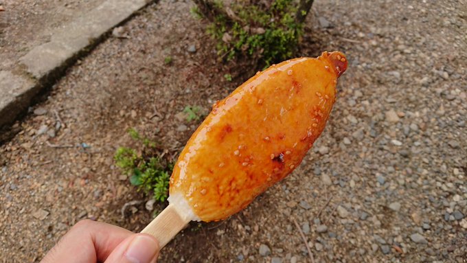 - 大滝鍾乳洞から出て五平餅が売られているのを発見。 『半分、青い。』の効果か人気らしく、15分待ち。私の後ろに並んでいた人は30分待ちと言われ、私が待っている内に、もう営業時間内に焼き上がらないからと売り切れになっていました。ギリギリゲットできた感じです。 pic.twitter.com/pDxgrQOayq posted at 22:52:24