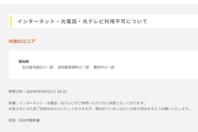 - 愛知県豊明市でも停電が起きていますね。 中部電力:緑営業所:停電情報 teiden.chuden.jp/p/office/160.h… pic.twitter.com/rx12F32Fv0 posted at 16:00:21